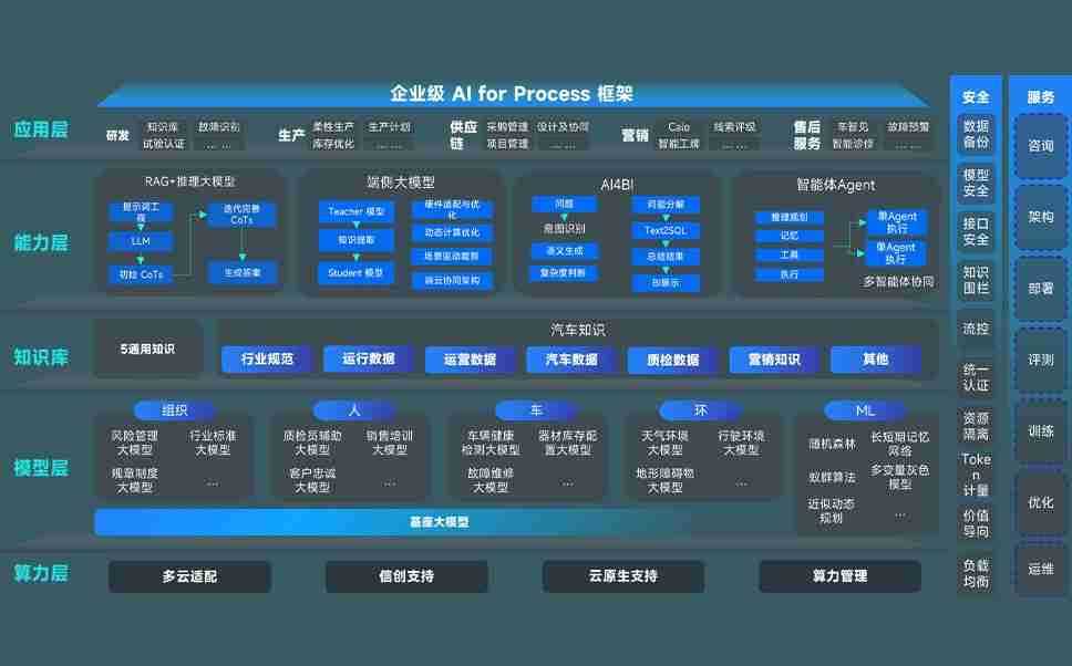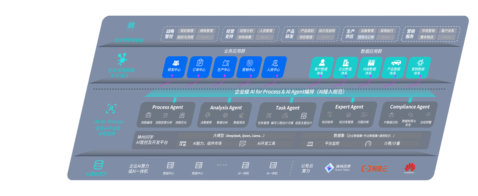 端到端的一站式AI工作空间深度融合了从企业战略规划到日常经营的全流程业务板块,,,定向解决车企内部领域多、、、、部门多、、、链条长、、场景碎片化等难题,,,支持车企快速构建以AI为核心的生产力写作体系,,,实现任务执行与AI能力的无缝集成与交互